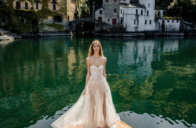 The MUSE by Berta Spring/Summer 2022 collection ad campaign is a love story that is set to take you into a journey through the magic of the enchanting Italian Lake Como. True to the MUSE by BERTA aesthetics, this new collection is the perfect mix of passion and softness with flowy silhouettes, sexy cuts with layers upon layers of soft dreamy fabrics.The anticipated collection boasts perfect detailing, like the 3D appliques, tulle bows, illusion fabrics that creates unique necklines, and shimmering sequins to add that fairy-tale like glimmer. Each piece is a work of art and inspiration that taking us one step deeper into this graceful love story.