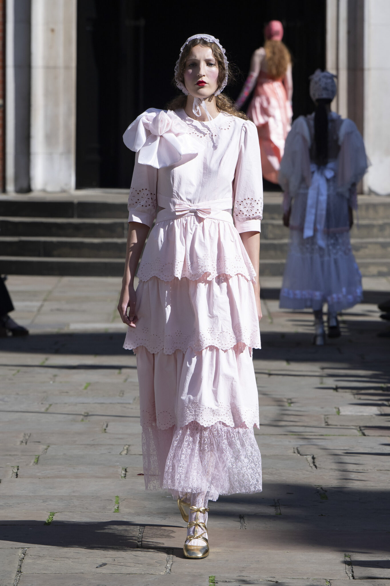For Spring/Summer 2026, Bora Aksu turns to a deeply personal archive—his collection of broken dolls gathered over the years. Porcelain faces with cracked cheeks and faded pastel frocks become the foundation for a collection that reimagines fragility as strength. Each imperfection tells its own story, translated into garments that celebrate resilience and the haunting beauty of what is fractured, delicate, and unfinished.