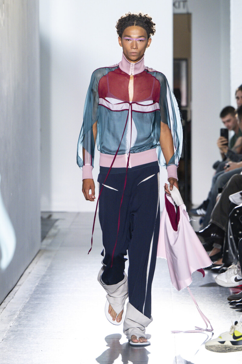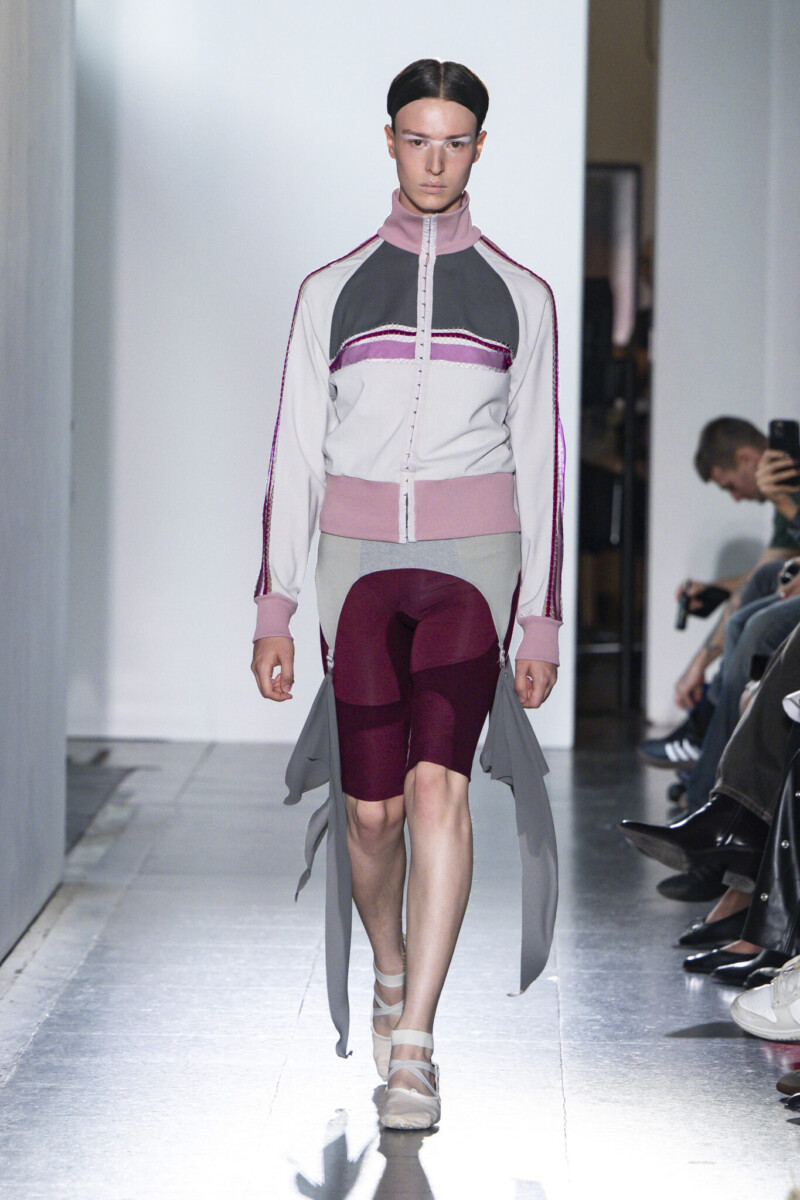 Fashion East marked its 25th anniversary with a Spring/Summer 2026 showcase at the Institute of Contemporary Arts in London, spotlighting the bold voices shaping the future of fashion. Three designers took the stage: Louis Mayhew (Mayhew), whose workwear silhouettes embedded with tools and Thames-found objects grounded his vision in raw materiality; Cameron Williams (Nuba), who explored migration and belonging through fluid, deconstructed tailoring; and Jacek Gleba, who closed the show with a riot of color and movement in layered sheer chiffons inspired by dance.