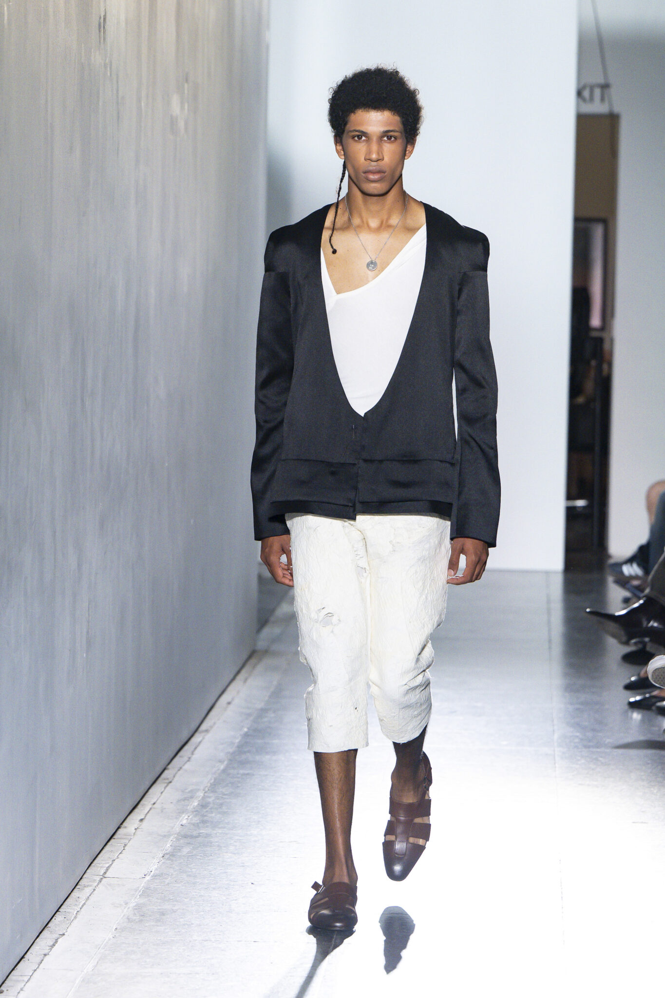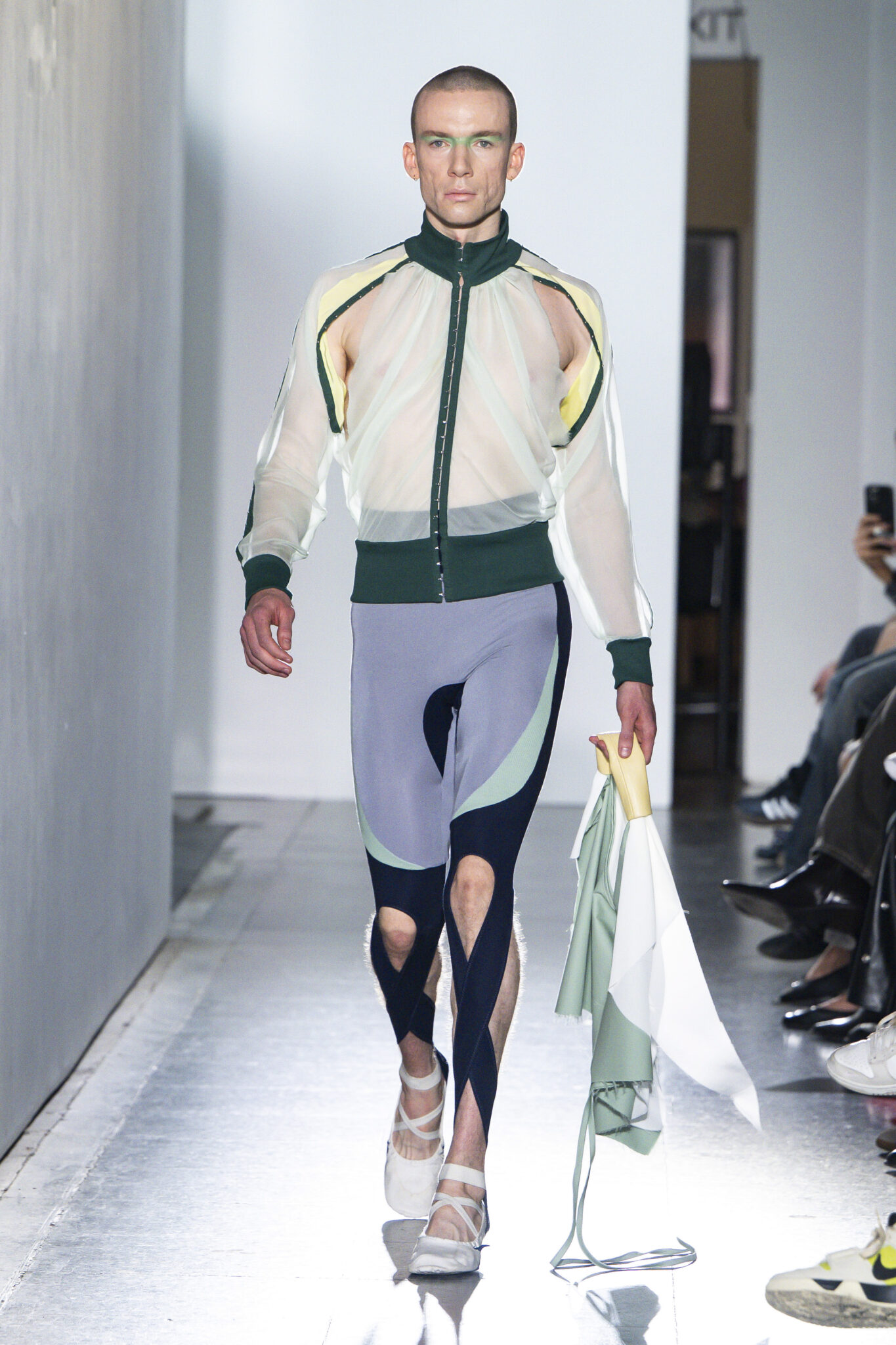 Fashion East marked its 25th anniversary with a Spring/Summer 2026 showcase at the Institute of Contemporary Arts in London, spotlighting the bold voices shaping the future of fashion. Three designers took the stage: Louis Mayhew (Mayhew), whose workwear silhouettes embedded with tools and Thames-found objects grounded his vision in raw materiality; Cameron Williams (Nuba), who explored migration and belonging through fluid, deconstructed tailoring; and Jacek Gleba, who closed the show with a riot of color and movement in layered sheer chiffons inspired by dance.