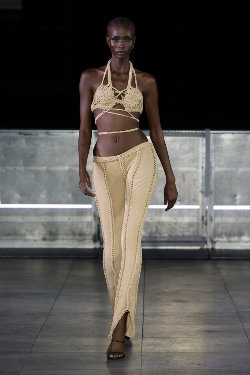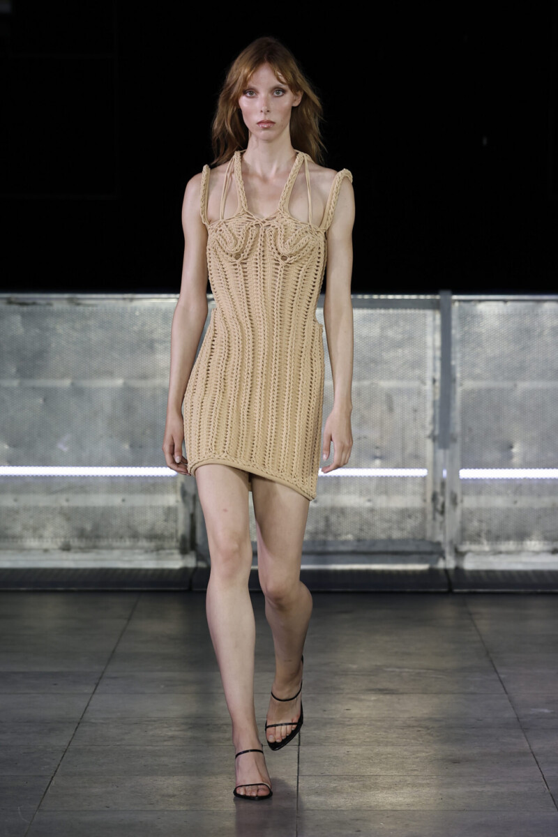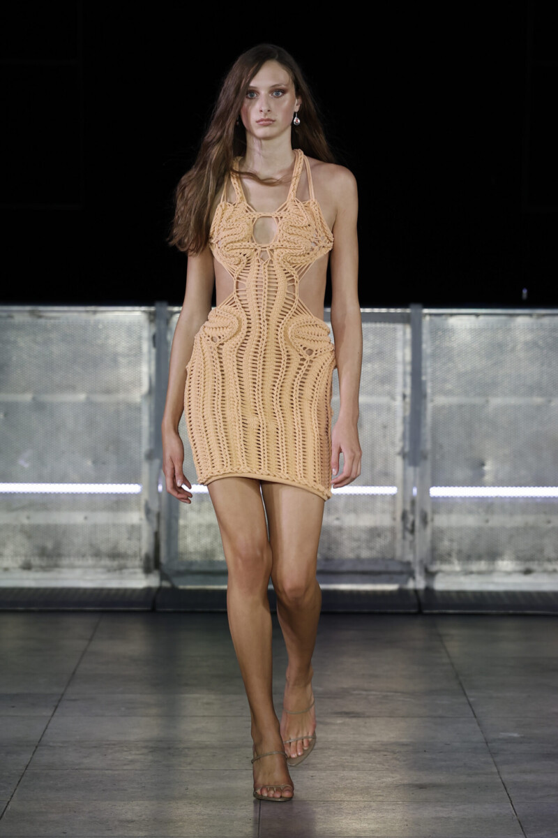 Mark Fast, London’s trailblazing knitwear designer, unveiled his Spring/Summer 2026 collection with a vision shaped by the sea—where tide, time, and transformation carve beauty from chaos. Inspired by sea glass and salt-weathered shores, Fast reimagined resilience as radiance: dresses wound in rope-like knits that contour the body like armor, velvet twinsets in sleek textures, lace cardigans and chiffon gowns brimming with romance, and denim minis bleached raw by salt and sun.