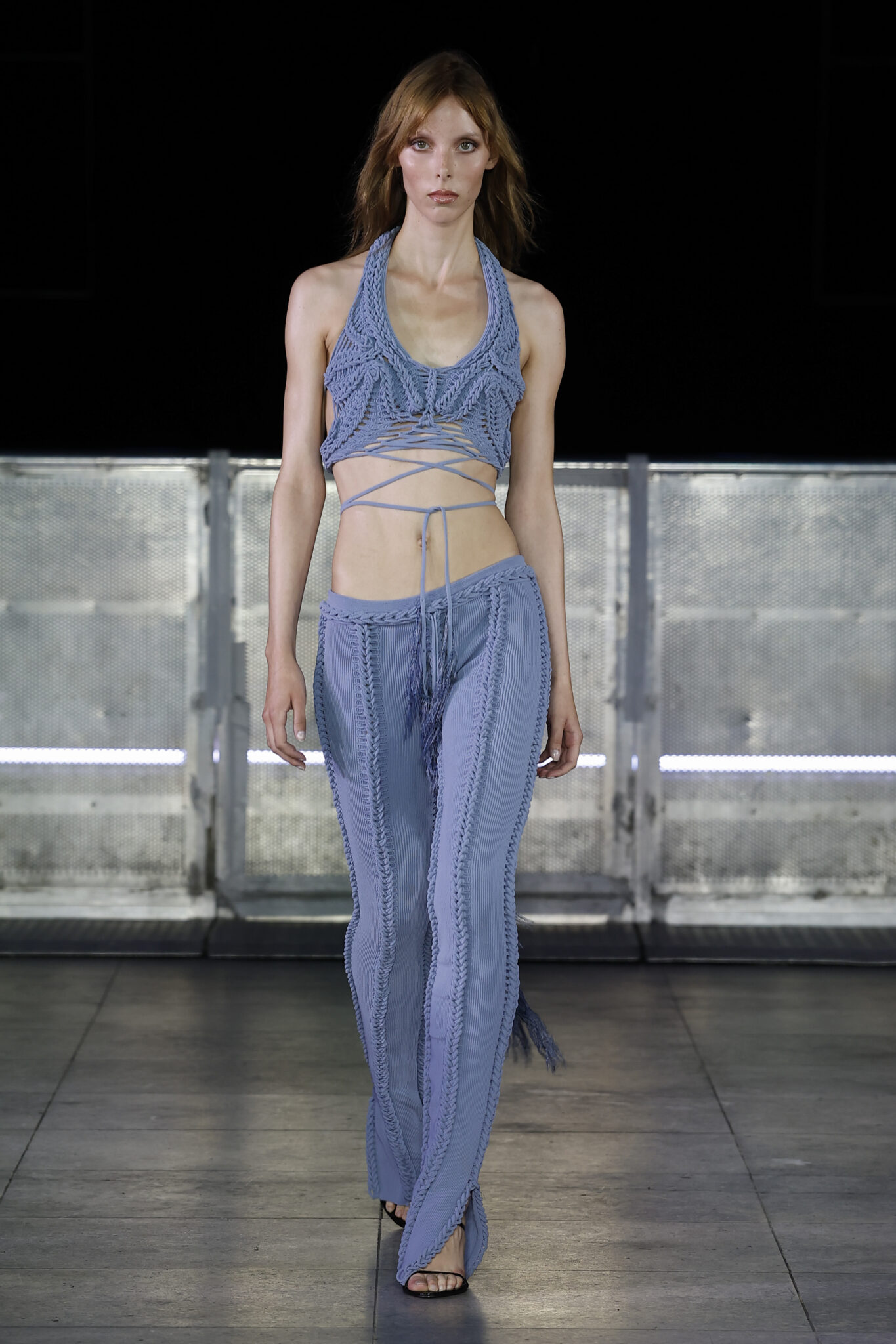 Mark Fast, London’s trailblazing knitwear designer, unveiled his Spring/Summer 2026 collection with a vision shaped by the sea—where tide, time, and transformation carve beauty from chaos. Inspired by sea glass and salt-weathered shores, Fast reimagined resilience as radiance: dresses wound in rope-like knits that contour the body like armor, velvet twinsets in sleek textures, lace cardigans and chiffon gowns brimming with romance, and denim minis bleached raw by salt and sun.