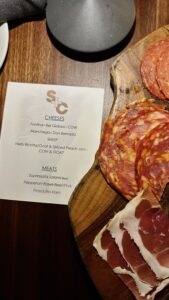 We started the evening the right way: cocktails and charcuterie. The Venezuelan Old Fashioned and the Garden of Eden cocktails were top tier. An abundant board layered with cured meats, cheeses, olives, pickles, and an assortment of crackers that invited you to linger. But the quiet standout was the whipped ricotta folded with peach jam. Silky, slightly sweet, and impossibly balanced. It was the kind of bite that makes conversation pause for a second.